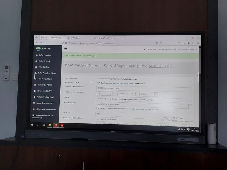 Fakultas Syariah UIN Sultan Thaha Saifuddin (STS) Jambi melangkah maju dengan mensubmit pengajuan borang Instrumen Suplemen Konversi (ISK) oleh Program Studi Perbandingan Mazhab. Acara yang berlangsung di